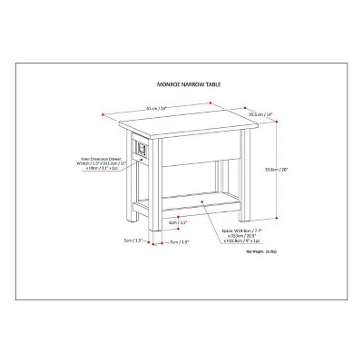 Garret Solid Acacia Wood 14 inch Wide Rectangle Rustic Contemporary Narrow Side Table. Sleek rustic contemporary design. Includes: one (1) drawer with ball bearing drawer glides & solid wood open bottom shelf. Handcrafted with care using the finest quality solid Acacia Hardwood. Assembly required. Size: 24″ d x 14″ w x 20″ h. Efforts are made to reproduce accurate colors, variations in color may occur due to computer monitor and photography. The product is warranted to be free from defects in material and workmanship for a period of (1) year from the date of purchase to the original owner.