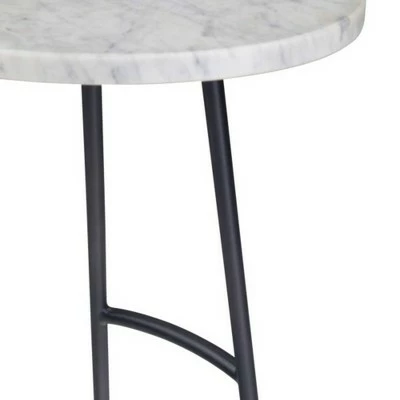 Sleek and airy, the Trisha Side Table adds big style to small spaces. The C shaped metal base with black finish mixed with a solid marble top fits smoothly into most modern, contemporary or eclectic home designs.