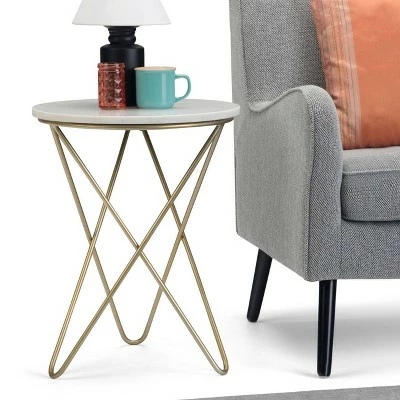 The Rivley Accent Table is a whimsical accent table that can be used in any room in your home. Beside a chair or sofa it is a great side table, beside your bed it becomes a nightstand or in your office, it’s a great place to put your cup of coffee. With its gold metal criss cross hairpin legs and its durable marble top, the Rivley is a modern decorative table that accents your home beautifully