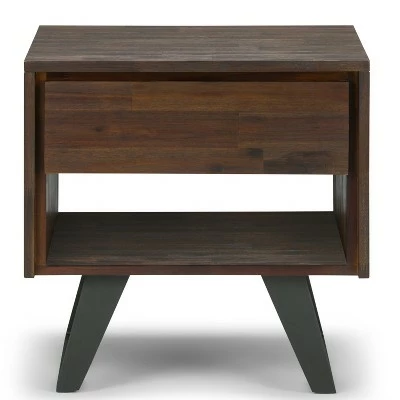 The Mitchell End Table provides an Industrial, Urban look and excellent functionality combined into one product. The table is handcrafted with a perfect combination of metal and solid Acacia. The drawer and open compartment provides plenty of space for storage. Whether you need a place for your favorite book, night lamp or drink – this is the piece of furniture for you.