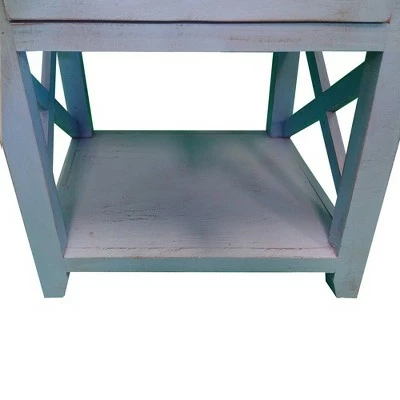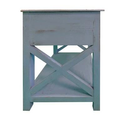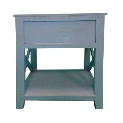 Quality craftsmanship meets transitional style with this Side Table, which comes with X cut out side panels. Incorporated with a smooth gliding drawer to keep your essentials handy and organized, it offers an open bottom shelf to keep magazines and books. Constructed sturdily from Brazilian pine wood frame for prolonged durability, this end table supported sturdily on chamfered legs. Accented in a striking white tone finish, the rough saw hewn texture impart this piece of furniture with a rustic appeal. The drawer is incorporated with a round pull handle to facilitate the storage space easily. The tabletop can be used as an abode for exotic decor, vases, showpieces and as a convenient storage space within your arms reach while lounging on sofa.