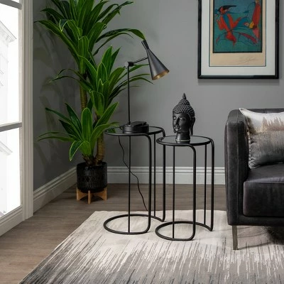 Any transitional design will be accentuated with the straight lines of this set of two metal tables with mirror tops. They will add a hint of modern decor as well as artistic elegance to your home space. The perfect home decor accessory to accent any corner, entryway or table in your living room, bedroom, and office. Sagebrook Home has been formed from a love of design, a commitment to service and a dedication to quality. They create and import fashion forward items in the most popular design styles. Backed with years of experience in the textile field, They are now providing a complete Home decor story. the combination of wall decor, furniture, lighting and Home accessories are all coordinated with textiles to provide a complete Home look. Sagebrook Home is committed to providing the best Home décor and accent pieces at value prices.