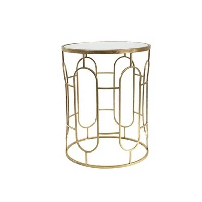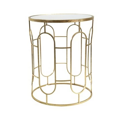 With its clean lines and open frame, this end table brings a touch of airy, contemporary style to your space. Crafted from metal, its frame sports a solid finish for understated appeal. Up above, there is a round mirror. Providing an easy to clean surface to set down snacks, a lamp magazines and more. This table is a fine fit for smaller spaces.