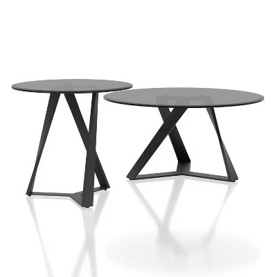 This artistic living room set acts as a conversation started in your modern home. A juxtaposition of the calm round tabletops and the twisted three-leg base frames are pleasing to the eye. The round tabletops are 8mm gray tempered glass with beveled edges. Their structural integrity is ensured by this hardened safety glass and the scratch and dent-resistant black powder-coated steel frames. In as little as two steps for each piece, you can assemble this set and update your home in no time.