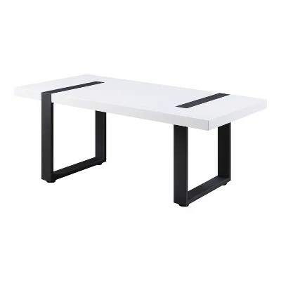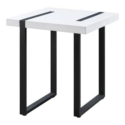 This coffee table and end table duo will make a terrific accent in your living space. Coming complete as a set, this is a contemporary end table and coffee table that is crafted from steel and MDF. The white tabletop makes a tremendous contrast with the dark steel base. Sturdy U-shaped legs make an open an airy feel for this set.