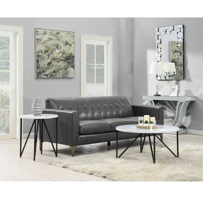 The Picket House Furnishings Kinsler 2pc Occasional Table Set is the perfect addition to your home! This dynamic duo is chicness at its best! This set includes a coffee table and end table, making it an easy addition to your living room. The white, marble table tops pair beautifully with the sleek, black metal legs; giving this set major chic points.