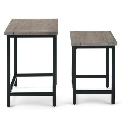 Rhonda Solid Mango Wood and Metal 25 inch Wide Rectangle Industrial 2pc Nesting Side Table, Fully Assembled. Modern Industrial Style. Black Metal Frame and Legs. Handcrafted with care using the finest quality richly grained solid Mango Hardwood & Metal. Small Table: 20″ h x 20.75″ w x 14″ d