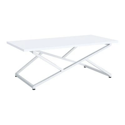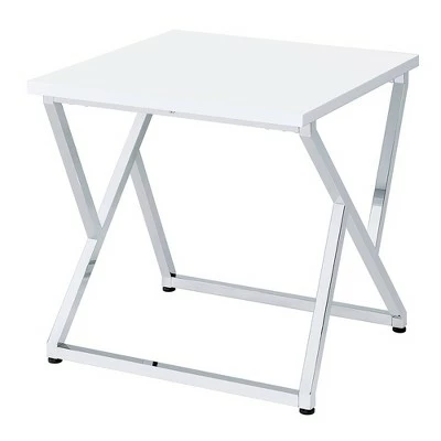 Glam up the sitting room or home office with this two-piece set of high gloss white living room tables. The coffee table and end table make for a dynamic duo with their playful chrome-plated frames. This steel build is sturdy yet gracefully chic. Atop levelers, the tables will always stay balanced and hold the clean-cut lines.