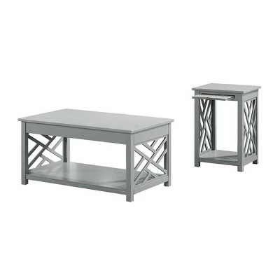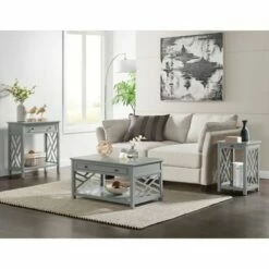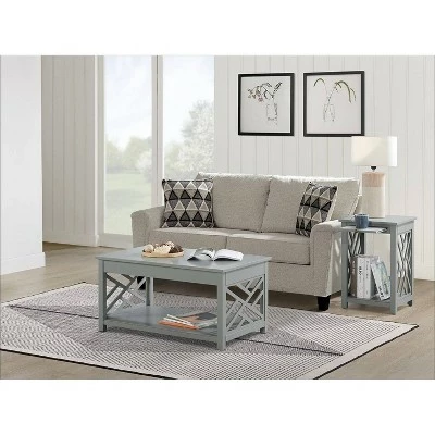 The 36″ Middlebury Coffee Table and End Table with Tray in Gray from Alaterre Furniture is a great addition to your living space. The open detailing on each side is airy and offers a unique look for your décor. The light gray finish works well with many room color schemes. The coffee table and end table are the perfect pairing for your living room. The pull-out tray in the end table is a unique way to add extra table space without taking up more floor space.