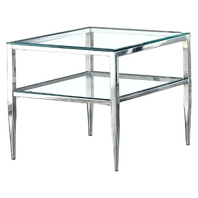 The HOMES: Inside + Out 3pc Aubrey Modern Table Set with Stiletto Legs in Chrome offers a chic twist on a classic design that you’re sure to love! The slim bases crafted from durable metal boast a shiny metallic finish that stylishly supports dual 8mm tempered glass shelves, both complete with smooth beveled edges. The HOMES: Inside + Out Aubrey Modern End Table with Stiletto Legs in Chrome is available in two finishes to perfectly fit your decorating needs.