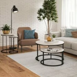 The Handcrafted Rustic Nesting Tables – Natural – Timbergirl has a bold look you’ll love. This nesting table set comes with 3 tables that fit together to save space when needed. The metal accents on these tables inspire a rustic industrial look.