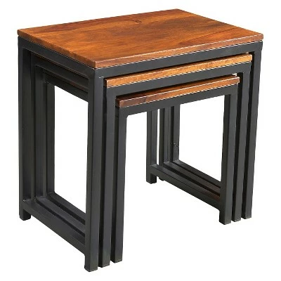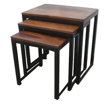 Get the well-loved look of repurposed wood and industrial feel of iron with the Reclaimed Sheesham Wood and Iron 3pc Nesting Table Set in Natural from Timber girl. The accent tables can be pulled out when company comes.