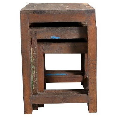 Get instant personality and a rustic look with the Reclaimed Wood 3pc Nesting Tables in Natural from Timbergirl. The accent tables can be pulled out when company comes.
