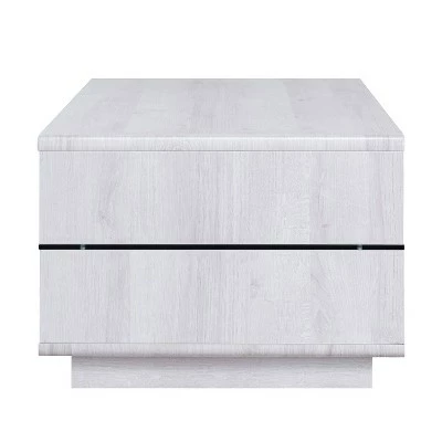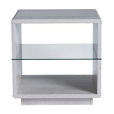 Pull together your modern living space with the clean lines and graceful curves of this three-piece contemporary living room coffee table set in white oak. Including a coffee table and two side tables, the set boasts wood grain details contrasting the crisp clarity of a single glass shelf at its center. Rounded edges soften the overall effect and a full lower shelf rests underneath the glass shelf, adding both display and organizational potential.