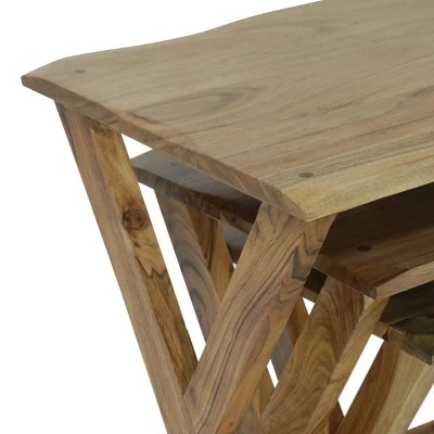 Invite earthy aesthetics into your home while also bringing convenient function to a variety of occasions, ranging from everyday use to special events. Including three nested tables, our exceptional set offers incredible versatility whenever you need some extra table space. When your guests have gone and you need your living room back, you can simply tuck these tables together for easy storage. Built with rich acacia wood and sturdy X-frames, this set will provide outstanding durability and style for years to come.
