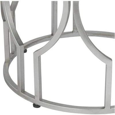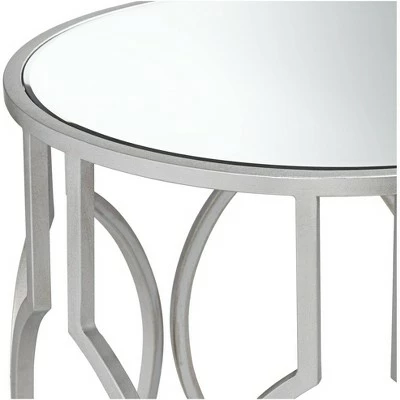 The Fara collection offers beautiful openwork table designs to add interest and modern appeal to your living space. This round end table design features a mirrored tabletop over an openwork base with a modified circular motif. A timeless look in an elegant silver finish.