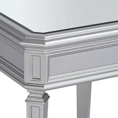 - Mirrored top. Silver finish. MDF and birch wood construction.