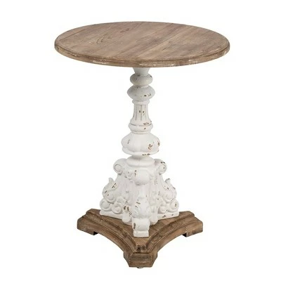 Made with fir wood and displaying a natural wood finish, the Antique White 26″ Round Side Table from the Signature Collection by A&B Home Collection is a unique spin on the traditional round table. The carved pedestal base features a classic – elegant flowers with exciting detail. Perfect for placement in a living room, bedroom, or even a dining area, this piece exudes a classic vintage style that will complement many decor styles!