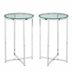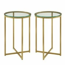 Set of 2 Vivian Glam X Leg Round Side Tables Glass/Gold – Saracina Home