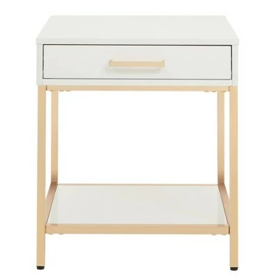 Your chic living room awaits with a stylish end table. A white gloss finish combines elegantly with gold-plated chrome legs for a modern, sophisticated feel. Perfect for accenting any living room. Two storage compartments allow plenty of room for your belongings. Get the contemporary home you’ve been craving with the Alios End Table.