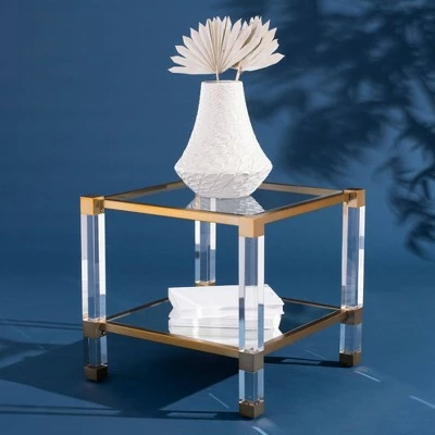 Modern muse. Inspired by the first reigning runway divas, the Angie End Table brings style, substance, and character to any room. Brass, glass and acrylic details conjure the grace, charm and decadence of those who embodied the lust for life. The cool mod design and bright elegant details of this end table makes it a perfect addition for contemporary, modern, or transitional rooms. It is available in multiple colors to best suit your personal tastes and decor.