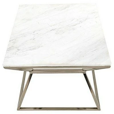 - The square marble table top showcases floral arrangements, artwork, or magazines