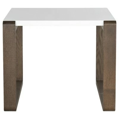 Rugged meets refined in the contemporary Bartholomew end table with sleek white lacquer top and chunky wood grained base in a chic finish. In homes from coastal to urban, this dramatic console will command attention in a living room or den. Constructed from MDF wood, the Bartholomew coffee table is able to support up to fifty pounds. The simple design makes it a piece that is easy to style and match. The Bartholomew coffee table is the perfect addition for Contemporary, Mid-Century or Modern style rooms.