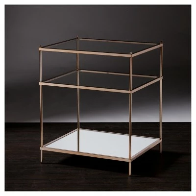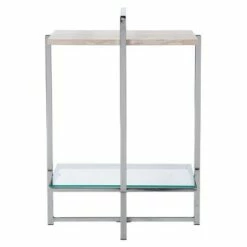 Bring the roaring ’20s to life with this opulently simple Benton Side Table from Aiden Lane. The minimalist architecture contrasts with the luxurious frame, high shine mirrored shelf, and sleek glass tabletop to create a vision à la Gatsby. Use the shelves to store your oh-so-gorgeous tchotchkes and/or art deco lamp; make a stunning statement anywhere in your home with this glamorous accent table.