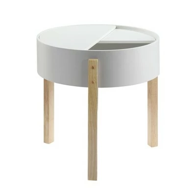 The Bodfish end table is not only beautiful but multi-functional. Its neutral color palette and wooden straight-square legs make it a perfect fit for a mid-century modern aesthetic. It boasts hidden top storage. Perfect for storing all your miscellaneous items and displaying decorative pieces. Its compact design makes it ideal for smaller spaces. A matching coffee table is available.