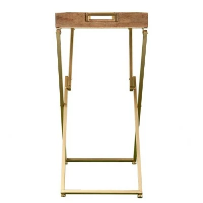 Add the perfect accent to your small space with the Aiden Lane Bushall Folding Side Table. The slim frame slides easily alongside your sofa or armchair, while a tray-inspired top holds drinks or your favorite book. The space-saving design folds when you need a little extra room, creating functional style in your living area or open concept floorplan. Modernize your home décor when you bring home this rectangular accent table.