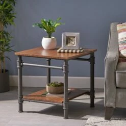 - MODERN INDUSTRIAL: Our side table incorporates a powder-coated frame with a sleek wood look to create an understated modern industrial design. Featuring smooth metal contrasted by a wood finish, this coffee table offers a chic aesthetic to any home.