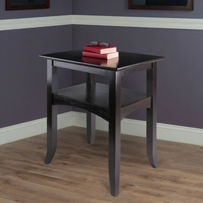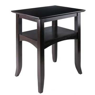 Gently flared legs and arched aprons add sweet touches to this traditionally-styled end table. And its solid wood construction in a rich Coffee finish will bring a natural appeal to any room in your home. Use the Camden End Table in the living room or bedroom to show off a table lamp or framed photos and have plenty of room on the shelf below for remotes and personal electronic devices, or for books and magazines. The rectangular shape allows for positioning that suits your furniture arrangement and room dimensions.