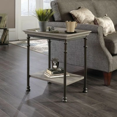 Give your home a modern industrial touch with this side table from the Canal Street collection. Its spacious tabletop offers space for coasters, plants, a lamp, TV remote, or your favorite coffee mug. Its lower open shelf provides additional storage. Detailed with a decorative, powder coated metal frame and finished on all sides in a Northern Oak, this versatile end table will add some style to any room.