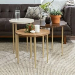 The Eloise Nesting Table Set is the most perfect set of nesting tables. Offering a touch of traditional appeal to your abode, this set showcases a powder coated metal frame awash in black and a circular tabletop boasting a chestnut finish. Save space by nesting them together, or split them up to accommodate guests. Scatter them around the room to hold drinks and hors d’oeuvres or arrange them in a stepped pattern to create a striking showcase for display.