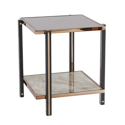 Add the finishing touch to your modern living space with the Aiden Lane Carswaf End Table with Mirrored Top. Printed glass creates a glossy faux marble look, while the mirrored tabletop conveniently holds a table lamp and your glass of wine. Ideal in your living room or entryway, this contemporary accent table brings sophisticated style alongside your sofa or armchair. Give your home a chic design upgrade with this square side table.
