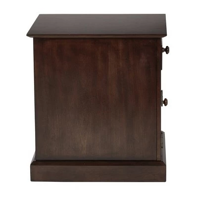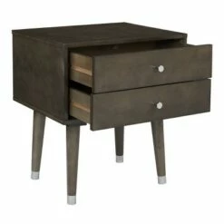 The OSP Designs Colette, Chair Side Table is the perfect combination of form and function. A deep drawer, large cabinet and handy magazine rack give you all the space you need to conveniently and discreetly store your family’s remotes, games, DVDs, books and more. The slim design allows this end table to easily slip beside your chair or couch while still giving you an ample amount of tabletop surface space. A timeless design makes it a great addition to your contemporary or traditional home dĂ©cor. The sturdy wood construction, button pulls and rich walnut veneer enhance durability for years of use. Assembly required. Dimensions: 22.25″ H x 15.75″ W x 20″ D.