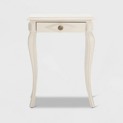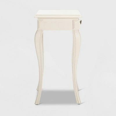 Whether holding books, headphones, or remotes, a simple yet functional bedside table can be difficult to find. This accent table is the storage solution to get the job done. Elegant in its simplicity, a single drawer hides away smaller items, while the sturdy wood top provides a place to set items down for the night. This decorative table also works well as a small accent table in an entryway or hallway, or next to your favorite lazy chair. This white accent table really can do it all.