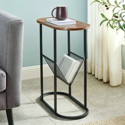Saracina Home’s Contemporary Oval Accent Side Table with Metal Wire Rack is thrilled to meet you. The oval shape sits snuggly against your living room’s best armchair. A suspended magazine rack below the tabletop is the perfect storage space for books or catalogs. The small-space friendly build can serve as an accent table, side table, or even a mini cocktail table. No matter how you use it, this side table will live up to the task.
