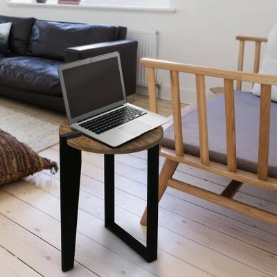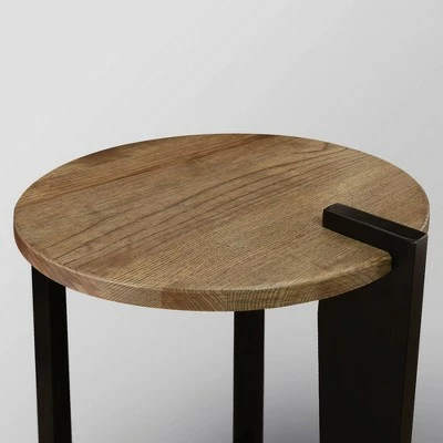 - Matte Black leg finish accentuates forest gray circular top to showcase American Oak.