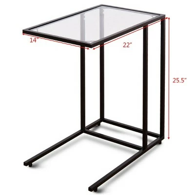 Our coffee tray side sofa end table with glass top Can be used as end tables, lamp tables, decorative displays tables, or simply accent pieces. This functional side table has a tempered glass top, which is idea for your snack or lap. Steel frame is solid and durable. With the feature of small, this end table is idea for sofa, ottoman or couch side, and it will make you life is easy and convenient. DO not hesitate to buy one and enjoy your leisure time. Specification: Material: glass top and steel frame. Overall dimension: 14″x22″x25.5″(LXWXH). Product weight: 8lbs. Package include: 1 X side end table. . .