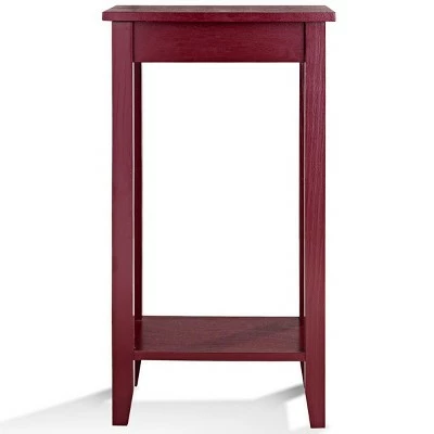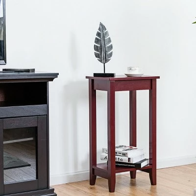 Product Description. Tall, Lean And Lovely! Wood Tall End Table Brings A Unique And Charming Design Element To Any Room. The Size Of The Tabletop Is The Perfect Balance Between Functional And Space-Saving And The Lower Shelf Provides Additional Space For Accent Pieces Or Other Small Items. Made From A Combination Of Solid Wood And Wood Veneer, The End Table Will Not Wobble, Wrap Or Split. Its Above-Average Height And Narrow Legs Make The Solid Wood Tall End Table Above All Others. Specification: Material:Wood. Dimensions:16”x12”x29”LxDxH). Weight:10Lbs. . .