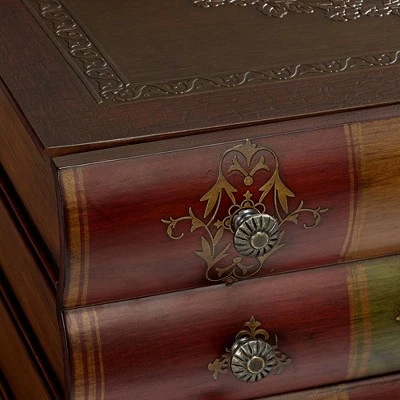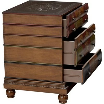 Classic and playful, this fancy traditional 3-drawer end table is deceiving. With a hand-painted chestnut finish with golden accents with embossed book details , this table has a bold design that is sure to stand out wherever it goes.