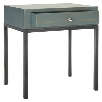 Chic and sophisticated, the contemporary Danforth end table is a versatile addition to the living room or bedroom. Crafted of Elm wood with various colored tops sitting on black Parson Style base and legs, this piece comes with a deep drawer to stow objects you need to keep close at hand. The perfect height for reading lamps, the Danforth end table finishes a room with flair. The Danforth end table is the ideal choice for Contemporary, Modern, Nautical or Shabby style interiors.