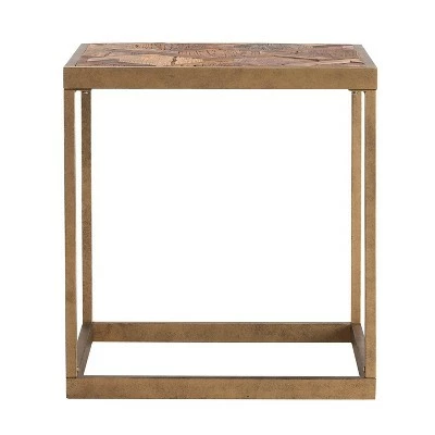 Piece together a rustic décor masterpiece with the Aiden Lane Darheath Reclaimed Wood Patchwork End Table. A boxy metal frame supports the roomy, reclaimed wood tabletop, crafting a mixed-material farmhouse look. Set your morning cup of coffee on the patterned surface, or top with a table lamp and curl up with a good book. Slide a pair of these square side tables on either side of your living room sofa, or style as a standalone accent table with potted greenery in your open concept space.