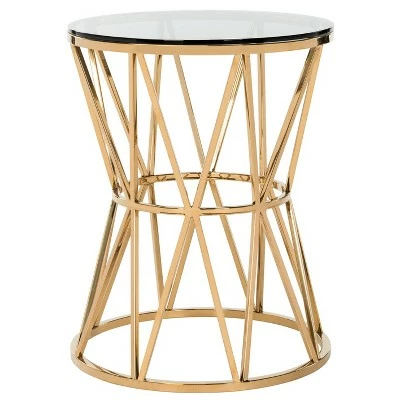 - Hourglass shaped end table with glass top
