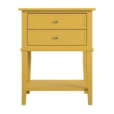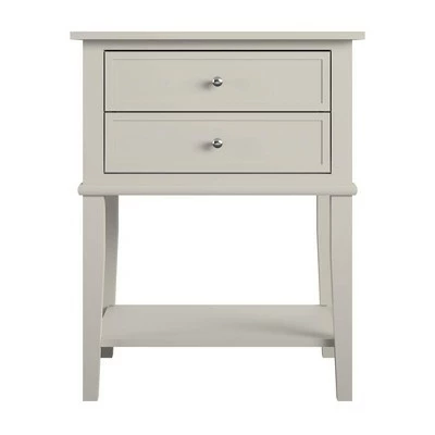 Keep essential items within arm’s reach with the Room & Joy Durham Accent Table with 2 Drawers. This beautiful piece stands perfectly next to your sofa or bed. The Accent Table features 2 spacious drawers for storing remotes, coasters, magazines and other household items. Place a lamp on the large top surface or use it to keep your beverage within arm’s reach. The lower open shelf is the perfect place to stack and organize your reading materials. Made of durable painted MDF and real wood legs, the Accent Table will look great for years to come. The Accent Table ships flat to your door and requires assembly upon opening. Two adults are recommended to assemble. Once assembled, the Accent Table measures to be 28”H x 22”W x 15.5”D.