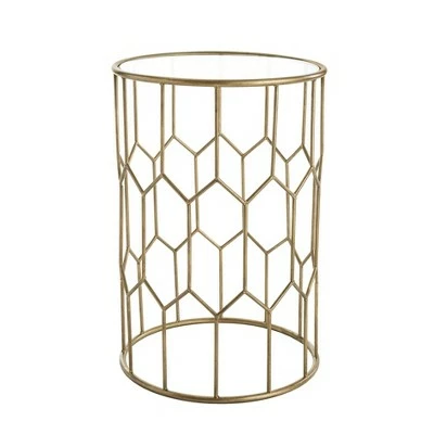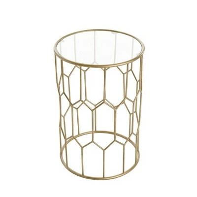 Break up with bulky, square end tables and add a hint of glamour to your space with this sleek, round accent table. Inspired by modern artwork, this side table combines a clear glass tabletop and brushed gold base for a light and airy look. The gold frame features a geometric design that is lightweight yet sturdy, while the tempered glass top is perfect for showcasing floral arrangements, artwork, or magazines. High end finishes of glass and gold make it easy to add sophistication to the living room, bedroom, or entryway.