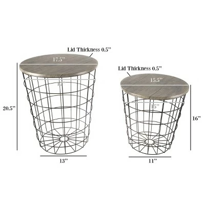 Organize your home with these stylish and practical Hastings Home Wire and Wood Nesting Tables. Stylish flared metal bases can be used with either end on the floor and double as their own storage solution. The gray wood grain veneer complements both rustic and industrial decor. Each set includes two nesting tables for everyday use in your living room, bedroom, or office.