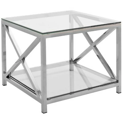 Inspired by Mies van der Rohe’s classic Barcelona table, the Hayward End Table makes an elegant statement in living room, family room or home office. Crafted with the classic materials of modernism, chrome and glass, its traditional “X-Style” foundation creates a piece that intermingles gracefully in any décor. This simple decorative and reflective structure calls for elegance and simplicity. This stylish end table is able to support up to fifty pounds. The Hayward coffee table is the perfect addition for Contemporary, Modern or Transitional style décor.