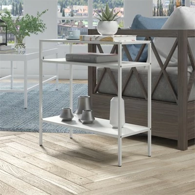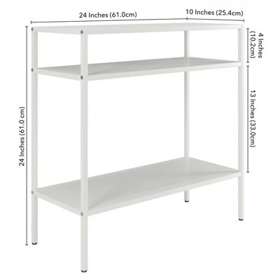 Clean-lined industrial styling gets a contemporary update with the eye-catching matte white finish of this accent table. Its narrow silhouette makes this a versatile piece in small spaces. Use as a micro-console table or pair two as bedside tables.Features : Handcrafted finish is applied to the steel frame.The perfect size and shape for compact spaces.Clean with a soft, dry cloth; no harsh chemicals or abrasive cleaning materials.Specifications : Product Dimensions : 10″ x 24″ x 24″Product Weight : 14.3 lbs